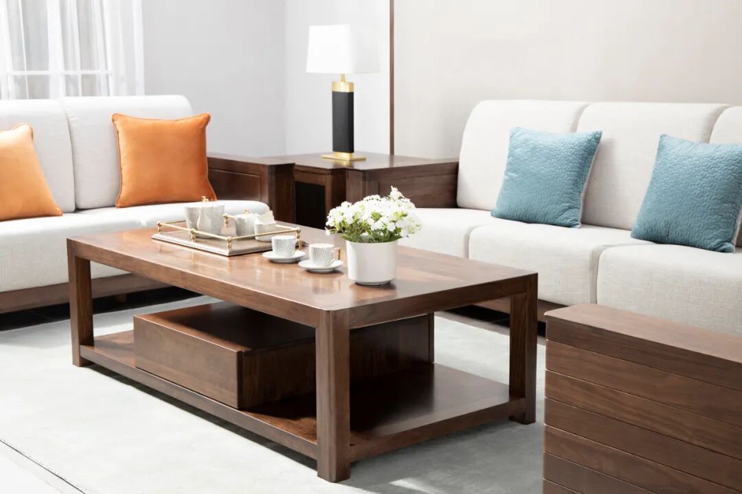 2、茶几形状长方形或椭圆形为宜,不宜用菱形尖角类茶几。