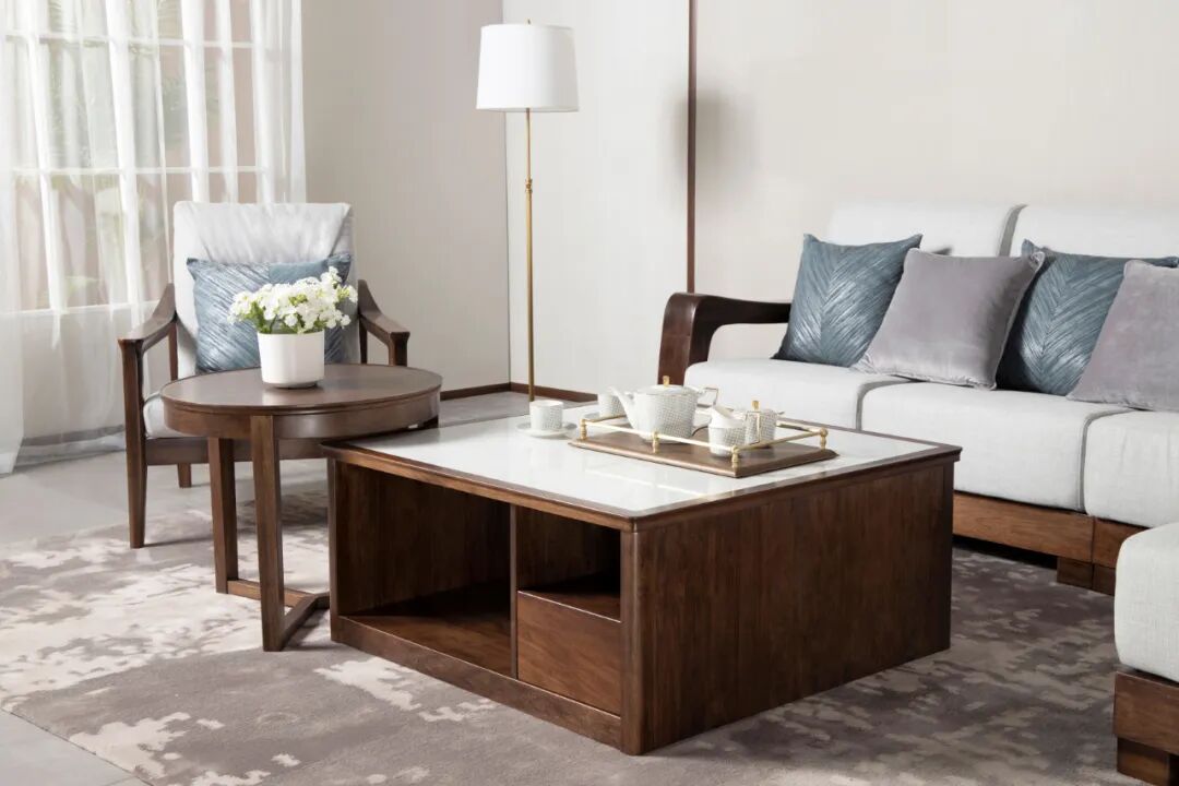 1、选择茶几以低平为原则,如人坐沙发,茶几高不过膝为宜。