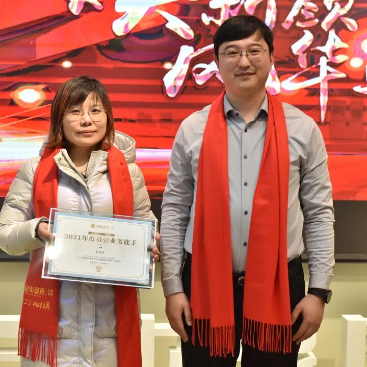 会上,王鹏也作了热情洋溢、鼓舞士气的讲话。他说,2021在后疫情时代的影响下,我们依然全力以赴,研发了新产品,全面系统开启了全屋定制,进行了全新的品牌包装,开展了全国实木家具的换季大保养等一系列大项目,受到了广大消费者的一致好评,也在市场低迷的情况下,实现了业绩大幅度的增长。经过2021年的发展,我们夯实了基础,脚踏实地的步入2022年,开始新发展元年!